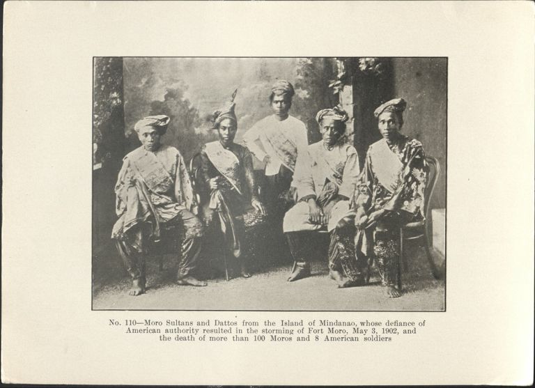 No. 110 - Moro sultans and dattos [datos] from the Island of Mindanao, whose defiance of American authority resulted in the storming of Fort Moro, May 3, 1902, and the death of more than 100 Moros and 8 American soldiers.