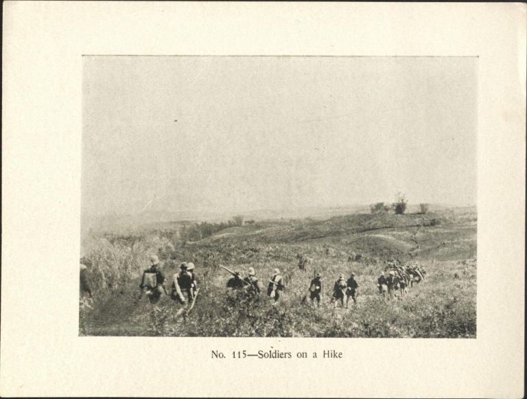 Subject: A long line of U.S. soldiers on patrol during the Philippine-American War. Givens was the post photographer at the Presidio of San Francisco starting in 1899. In 1900 he traveled