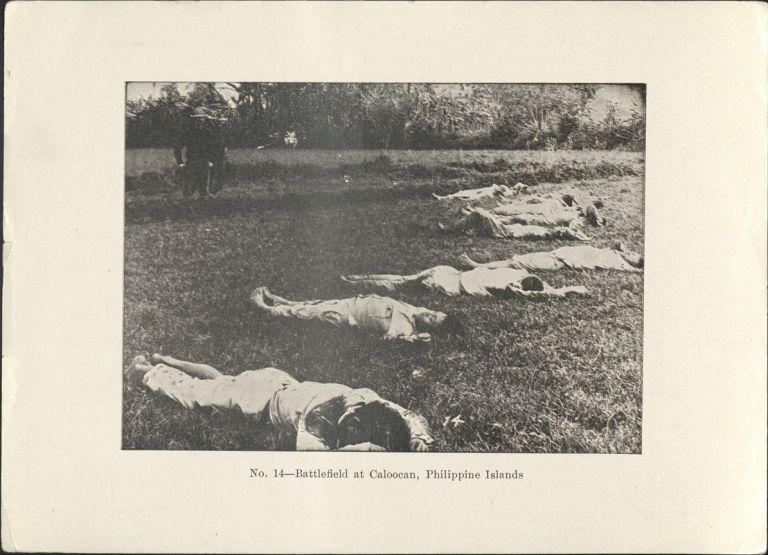 Subject: Dead Filipino soldiers laid out in a field near Caloocan. In the Battle of Caloocan (February 10, 1899) American troops under General Arthur MacArthur captured the town of Calooca