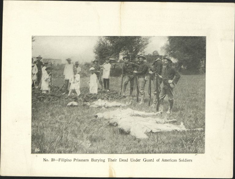 No. 20 - Filipino prisoners burying their dead under guard of American soldiers.