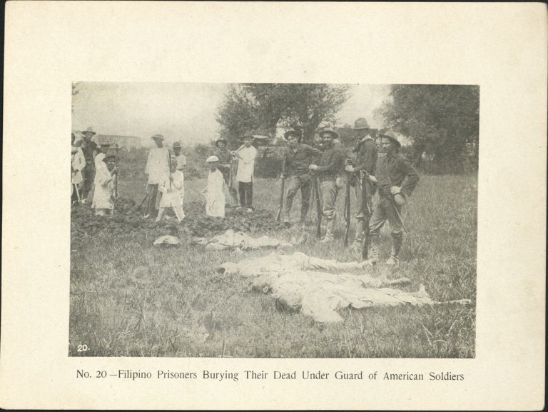 No. 20 - Filipino prisoners burying their dead under guard of American soldiers.