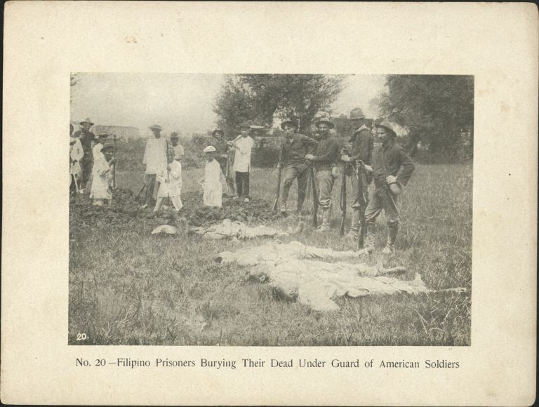 No. 20 - Filipino prisoners burying their dead under guard of American soldiers.