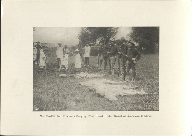 No. 20 - Filipino prisoners burying their dead under guard of American soldiers.