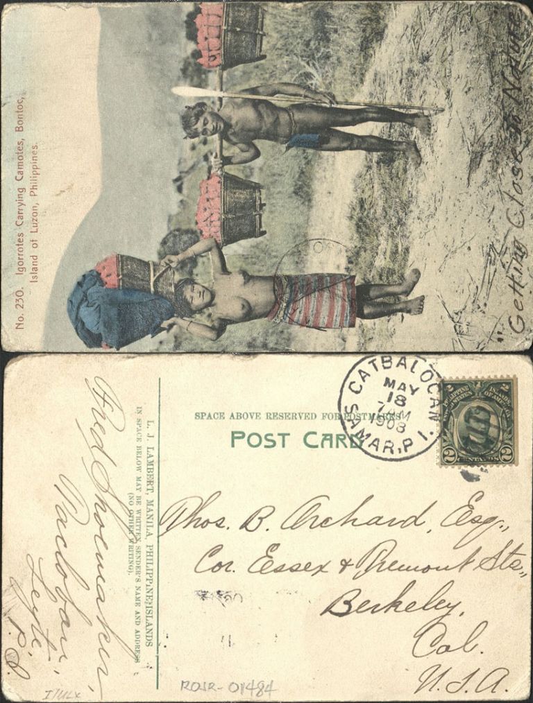 No. 230. Igorrotes [Igorots] Carrying Camotes, Bontoc, Island of Luzon, Philippines.