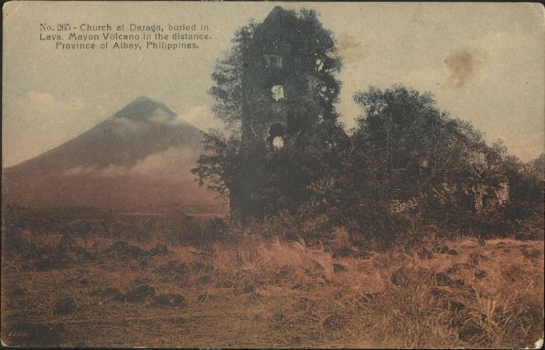 No. 265 � Church at Daraga, buried in Lava. Mayon Volcano in the distance. Province of Albay, Philippines.