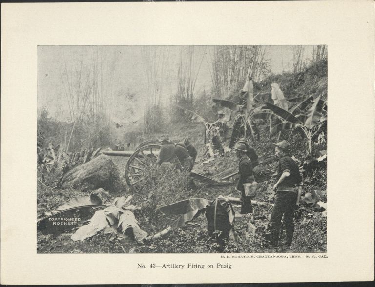 Subject: U.S. soldiers fire a cannon in brushy, hilly country. See also OFI-003063, same image with a different caption. Givens was the post photographer at the Presidio of San Francisco s
