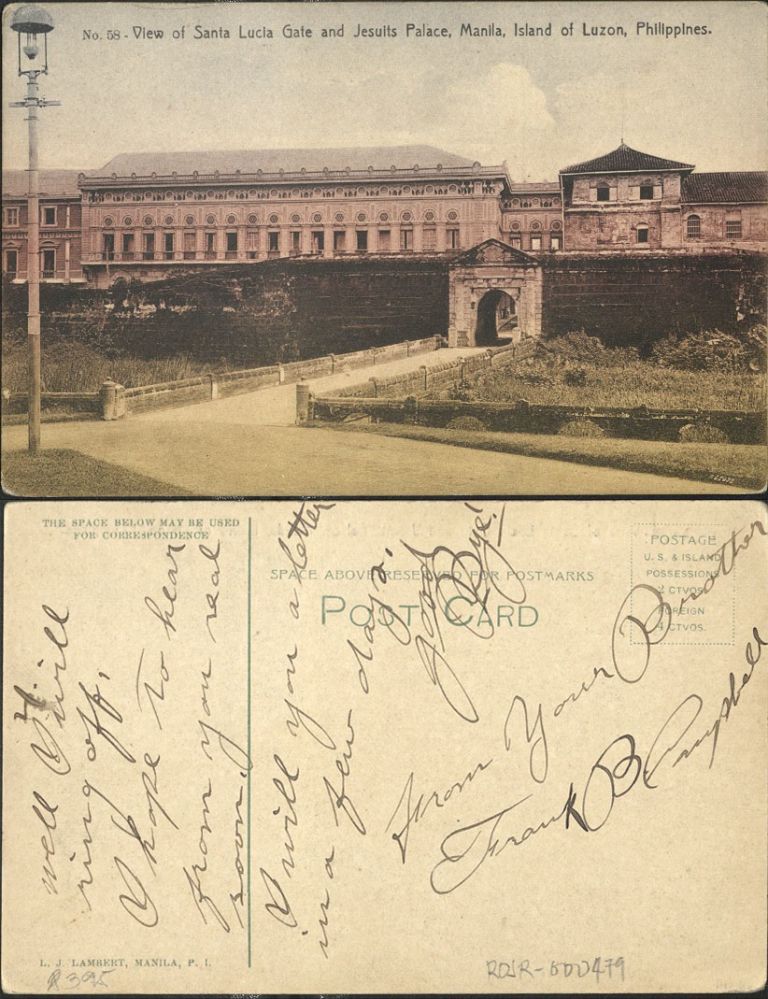 No. 58 � View of Santa Lucia Gate and Jesuits Palace, Manila, Island of Luzon, Philippines.
