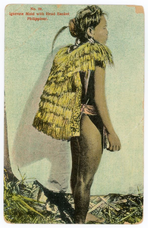 No. 92. Igorrote [Igorot] maid with head basket, Philippines.