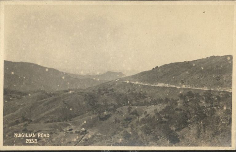 Subject: Naguilian Road cuttting across mountainside outside of Baguio. The "Naguilian Trail" was an early route into Baguio prior to construction of the Benguet Road in 1905. The proper "Naguilian Ro