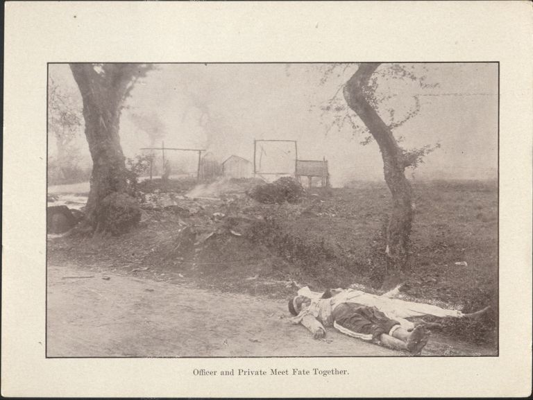 Subject: Two Filipino men lie dead on the side of a road, one in a white uniform (presumably an officer). Givens was the post photographer at the Presidio of San Francisco starting in 1899