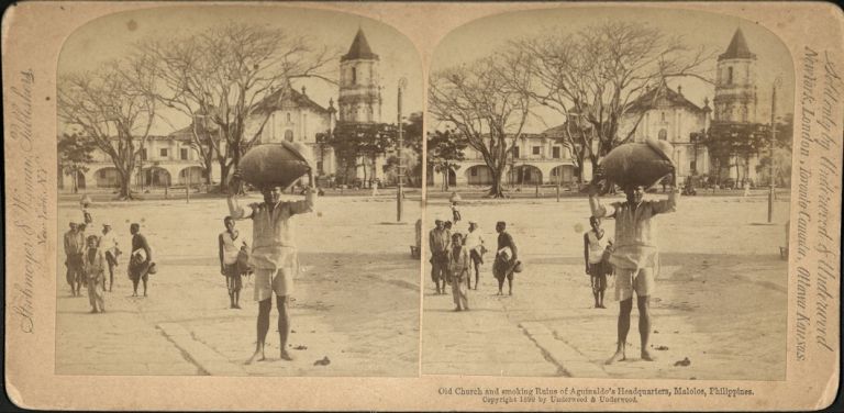 Old Church and smoking Ruins of Aguinaldo's Headquarters, Malolos, Philippines.