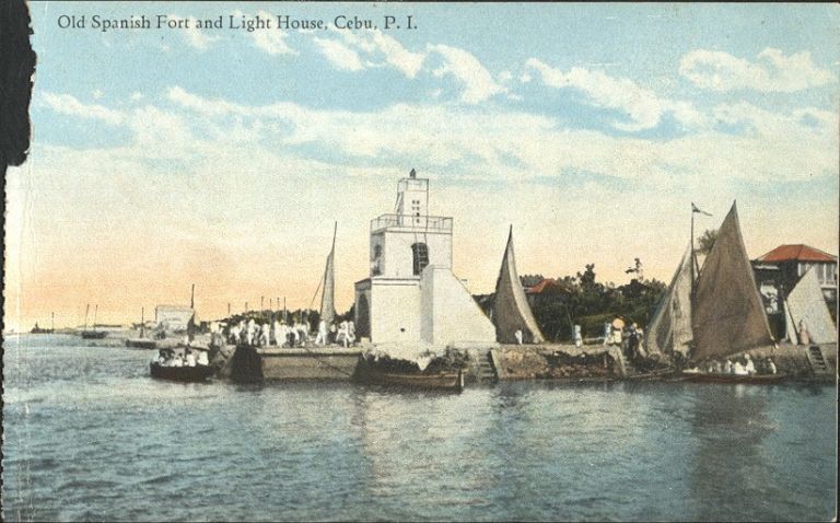 Subject: Lighthouse and harbor with Fort San Pedro in the area now called Plaza Indepedencia, in the pier area of Cebu City. See also OFI-004298 and OFI-004308.