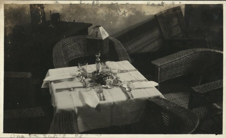 Subject: If the decoding of the handwritten caption is correct, that's the table setting of this couple's last dinner while serving at Fort Mills, Corregidor Island.