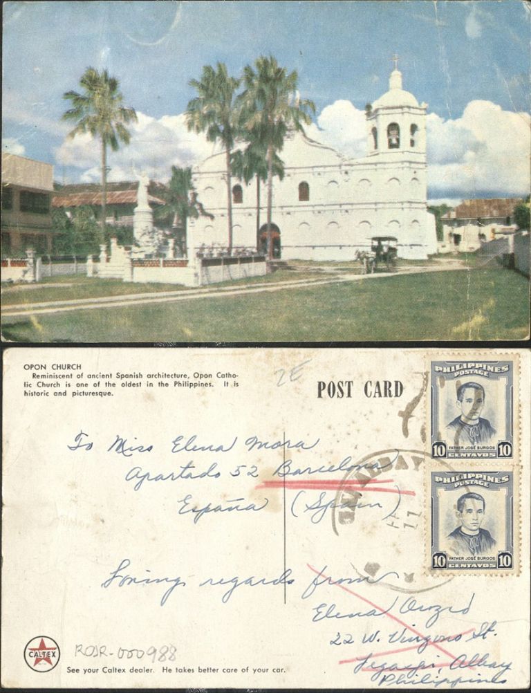 Subject: Opon Church or the Virgen de la Regla of Opon, in Lapu-Lapu City, Cebu. Completed in 1744 and made of coral, it was damaged in World War II, bulldozed in 1960, and rebuilt in the new style