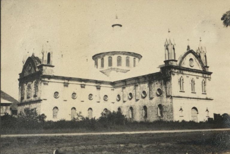 Subject: The original Immaculate Conception Church in Oton, Iloilo, was constructed in a blend of Greek and Gothic/Classical elements. It was built in the shape of a Greek cross with all ar