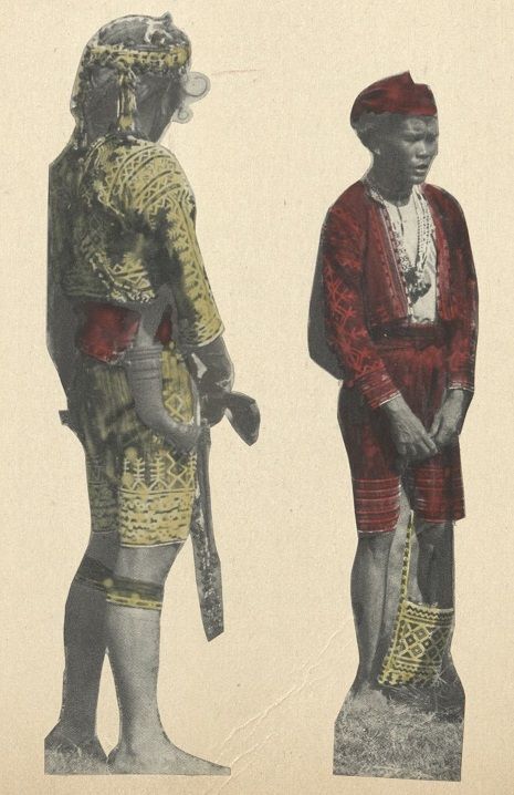 Subject: Two Bagobo men, an indigenous people of the island of Mindanao in the vicinity of Davao. These two people have been carefully cut out from the or