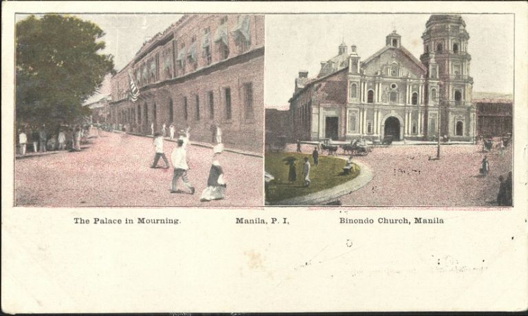 The Palace in Mourning and Binondo Church, Manila, P. I. [dual view].