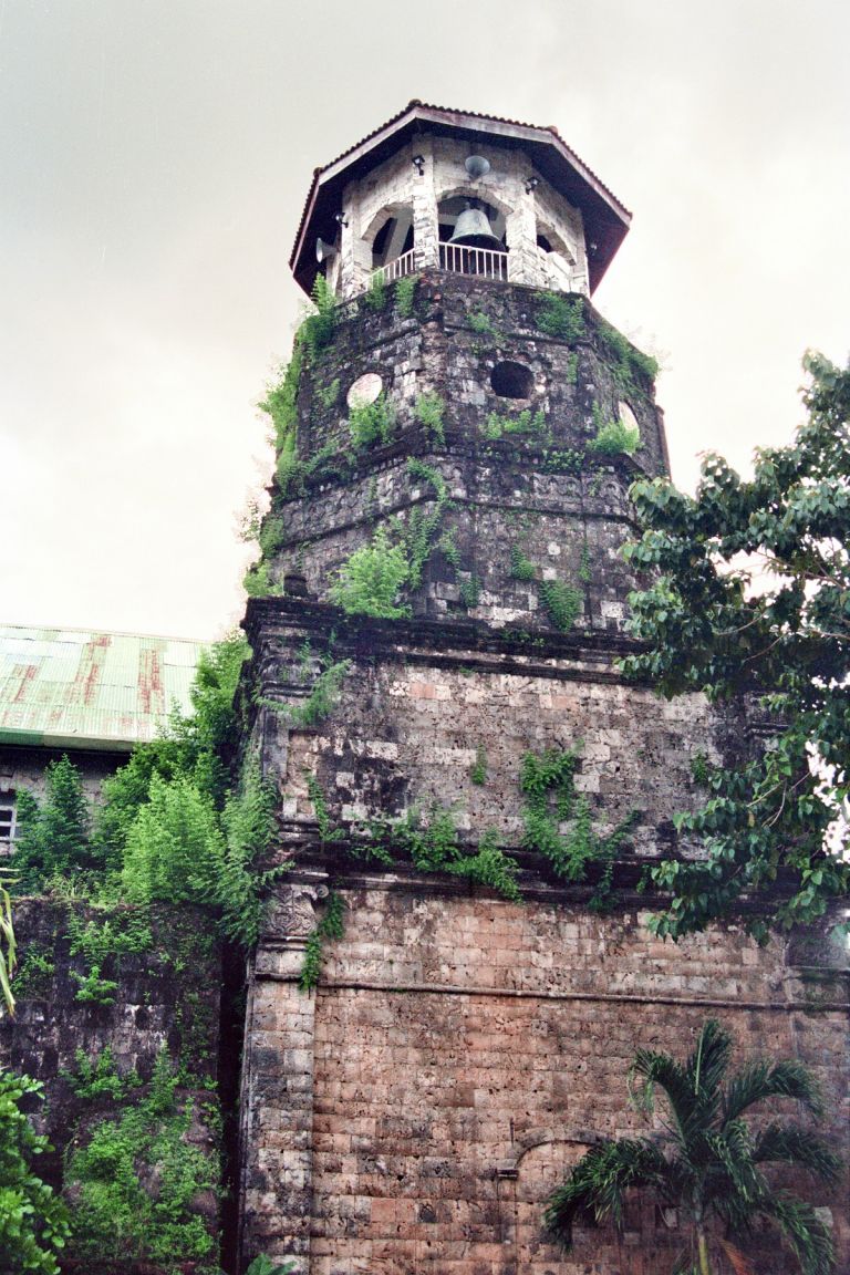 Subject: A 1996 view of the bell tower of Santa Monica Parish Church, also called Panay Church, near Roxas City in Capiz province. It was built in 1884 on the site of an earlier church, built in 1774.