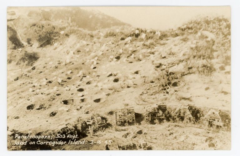 Paratroopers, 503 Regt. [Regiment] land on Corregidor Island 2-16-45.