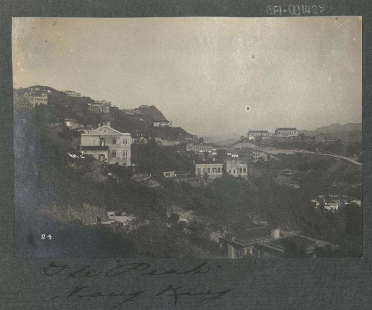 Subject: The view from the Peak (Victoria's Peak) is one of Hong Kong's top tourist attractions. Type: Photograph mounted on board, B/W (sepia), no border, matte.