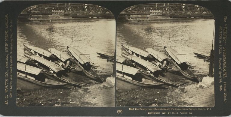 The Penny Ferry Boats beneath the Suspension Bridge, Manila, P. I.