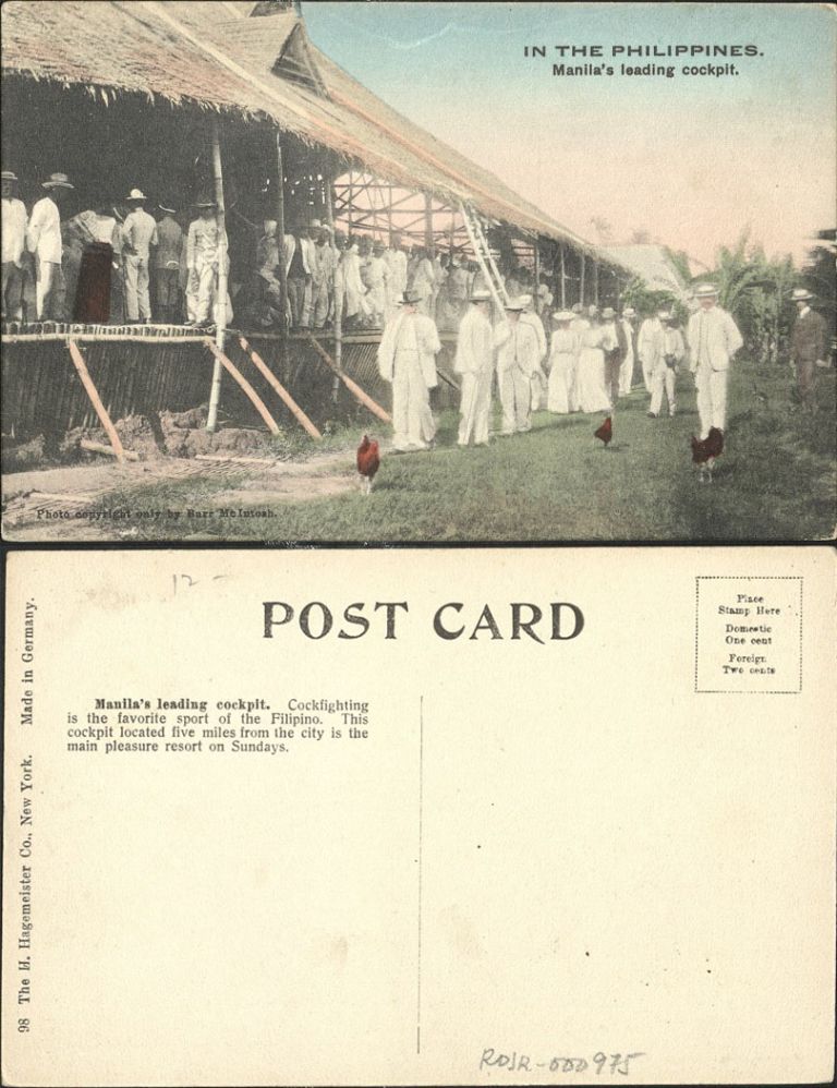 Subject: Full caption: �Cockfighting is the favorite sport of the Filipino. This cockpit located five miles from the city is the main pleasure resort on Sundays.�