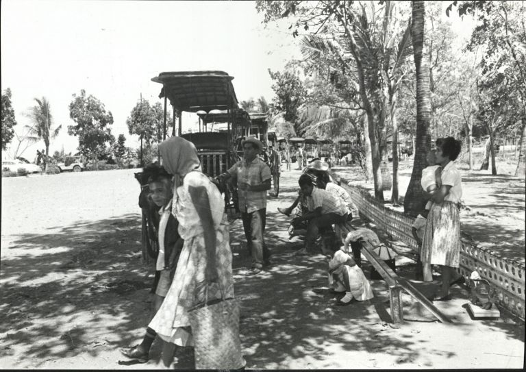 Subject: Passengers wait at a shady carromata station. This must be at New Bilibid Prison. The new prison was built beginning in 1936 in Muntinlupa at an area considered at that time to be "remote". I