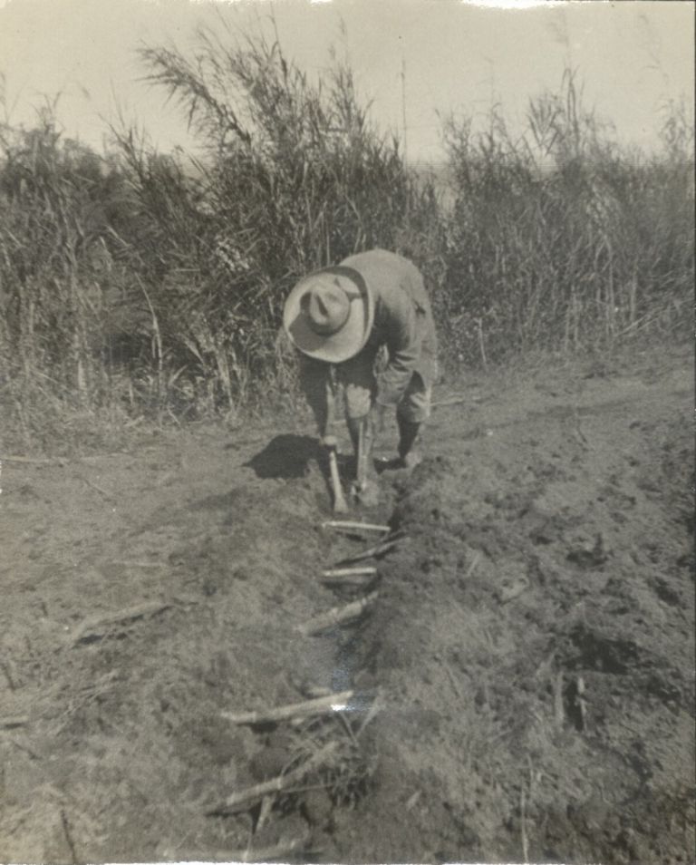 Planting sugar cane.