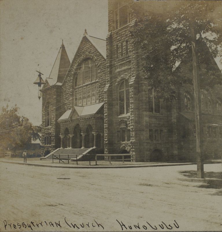 Subject: It's difficult to find any other photos corroborating the caption's claim to this church being in Honolulu. It has some similarities to Kaumakapili Church, but other details are wi