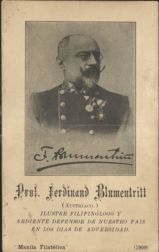 Prof. Ferdinand Blumentritt (Austriaco.) Ilustre Filipin�logo y Ardiente Defensor de Nuestro Pais en los dias de Adversidad. [Distinguished Filipinologist and ardent defender of our country in the difficult days].