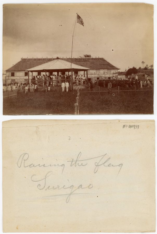 Officials and spectators watch the official American flag-raising ceremony. In 1901 the American colonizers established a civil government in the province of Surigao, keeping the town of Surigao as its capital.