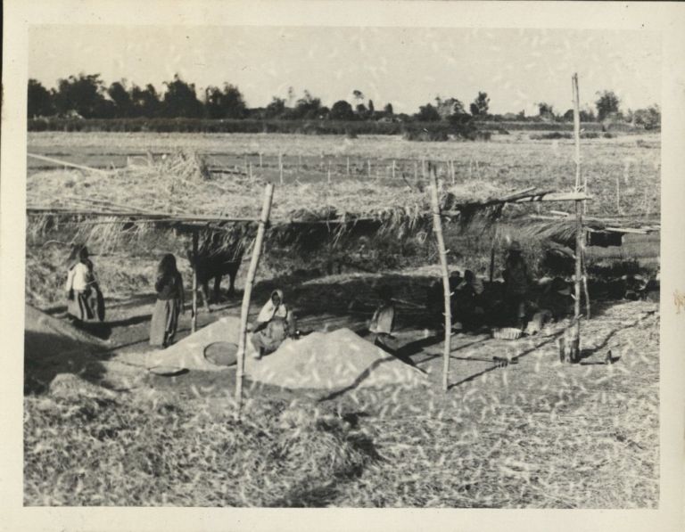 Subject: Winnowing rice under a shelter from the sun in Bataan Province.