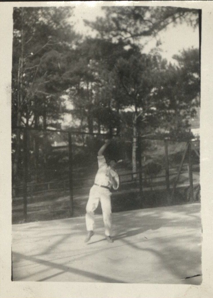 Subject: Alfred Leslie Griffiths on the tennis courts in Baguio. Griffiths, who came to Brent School in 1932, "was to spend most of the rest of his life in the Philippines, becoming both acting and fu