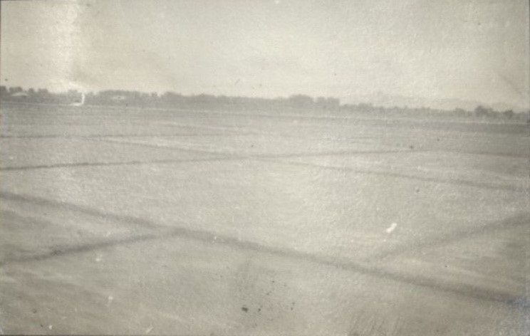 Subject: Muddy rice paddies laid out in squares ready for planting. Likely taken from a train as Harry Jr. was leaving Albay.