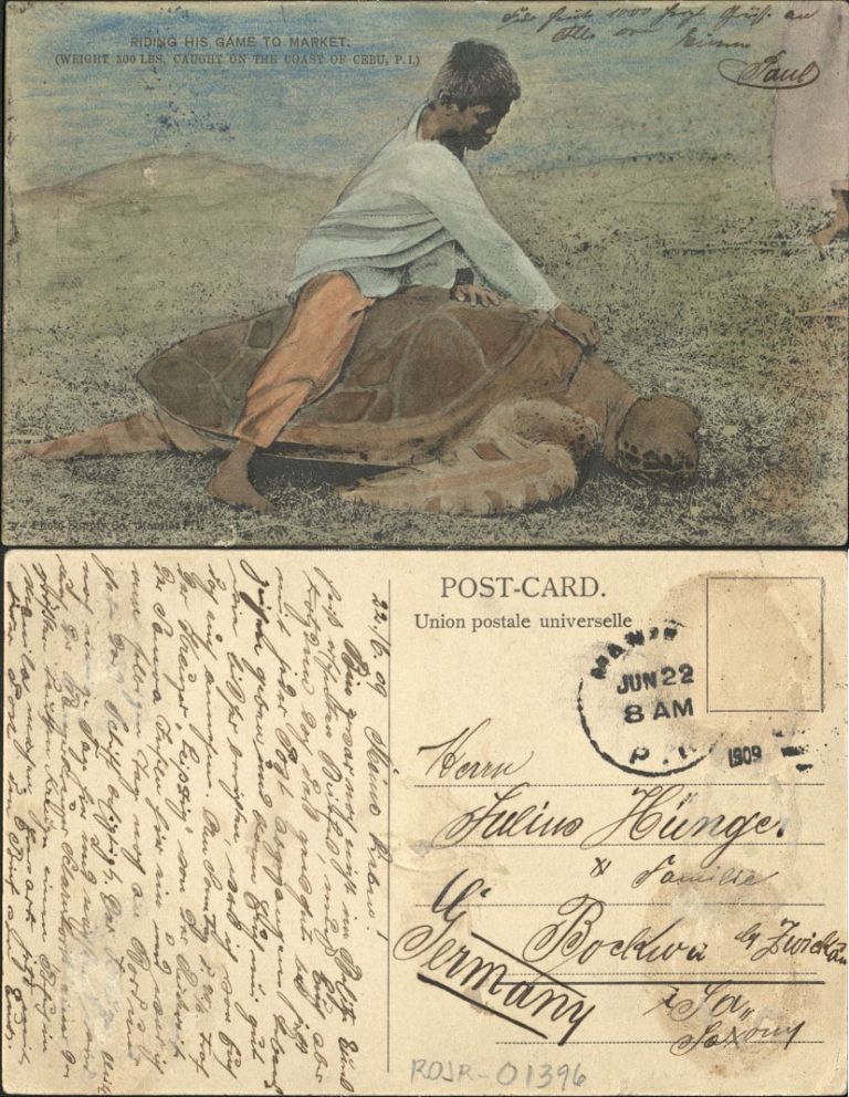 Riding his Game to Market. (Weight 300 lbs. Caught on the coast of Cebu, P. I.