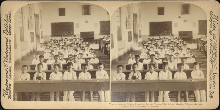The right way to Filipino Freedom - Boys in Normal High School, Manila, Philippine Islands.