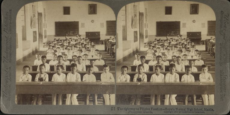 The right way to Filipino Freedom - Boys in Normal High School, Manila, Philippine Islands.