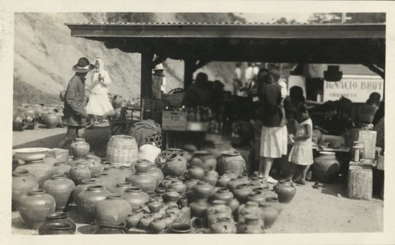 Subject: A market near Manila featuring pottery of all shapes and sizes. See also OFI-004262, which by the background may have been taken at the same place.
