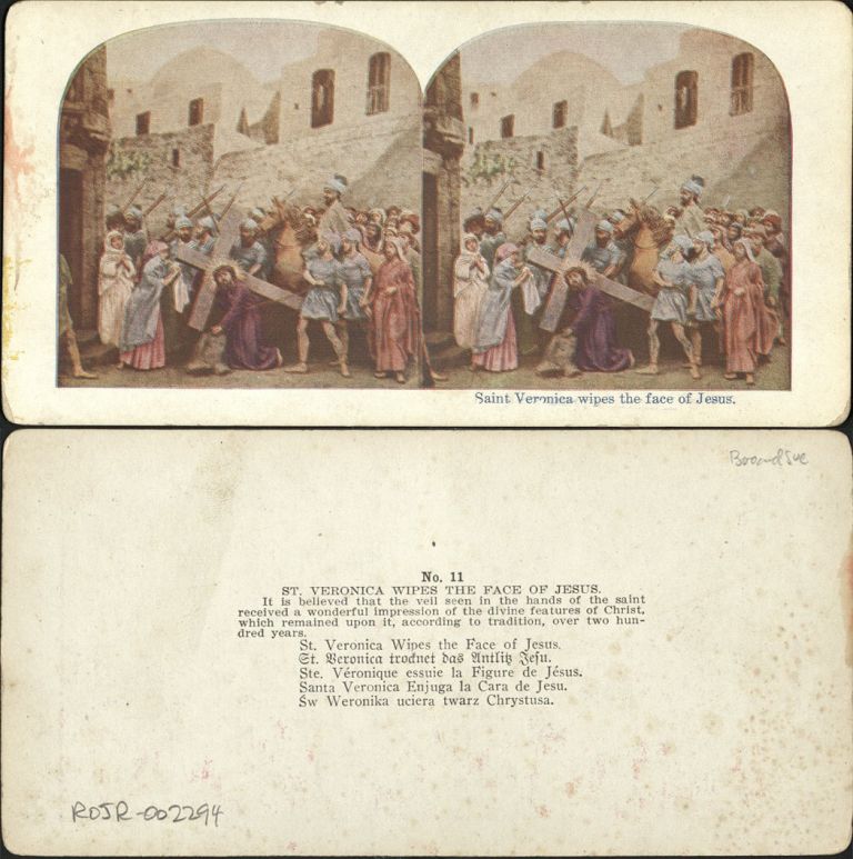 Religious-themed #REL-011. Illustration of Jesus on the way to Calvary, with Saint Veronica wiping His face with a veil.
