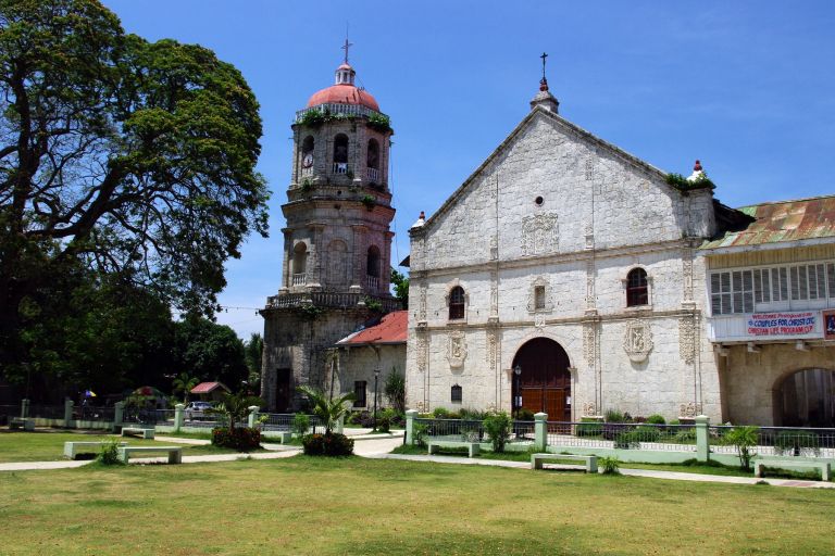 San Guillermo de Aquitania Parish Church, Dalaguete, Cebu - facade, convent, and bell tower view.