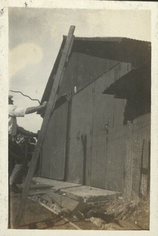 Subject: "Billie" or William, the husband of this album's creator, climbs a ladder while on a picnic on Corregidor.