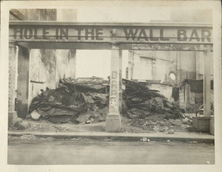 Subject: Hmmm... was this really a bar before the Battle of Manila in 1945, or did someone paint the name after as a joke? A pile of rubble and corrugated sheet metal fills the cavity now, and a shell