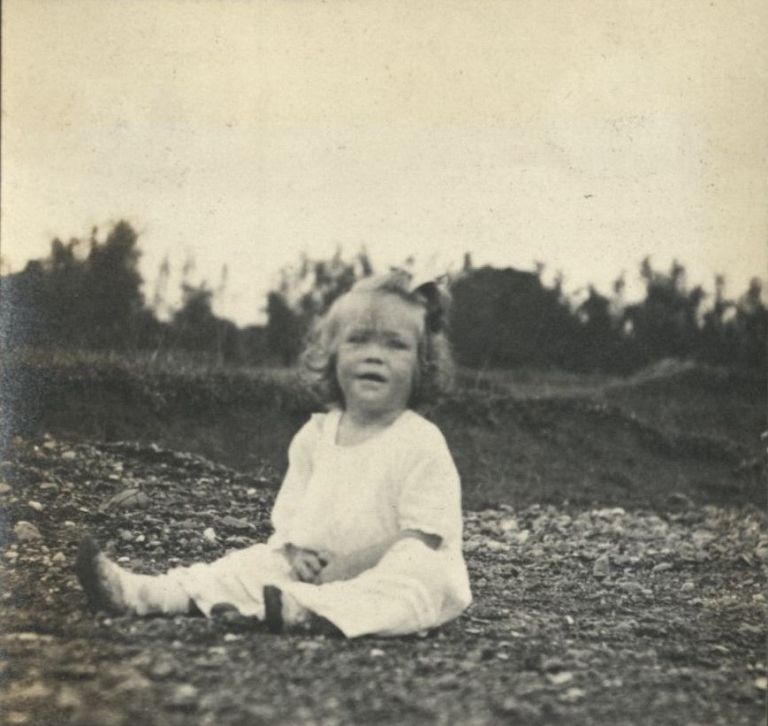 Subject: Probably Isabelle Baird, sitting on the ground, about to get her white clothes all dirty.