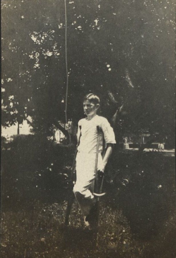 September 1917 [Young man on crutches].