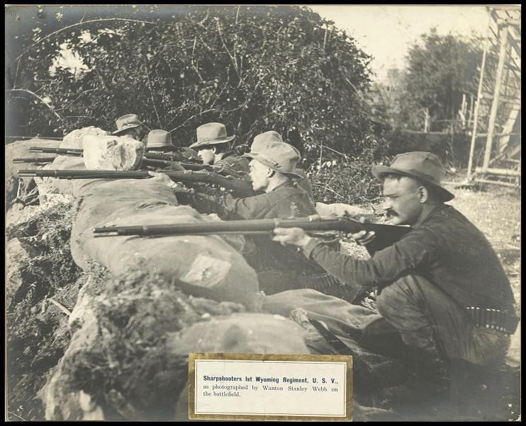 Sharpshooters 1st Wyoming Regiment, U.S.V. [United States Volunteers], as photographed by Wanton Stanley Webb on the battlefield.