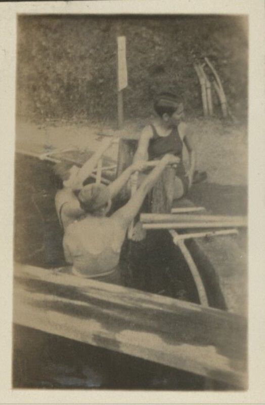 Sis [Nathelle Laing?], Sheila and Mrs. Morrison at the Antamok pool.