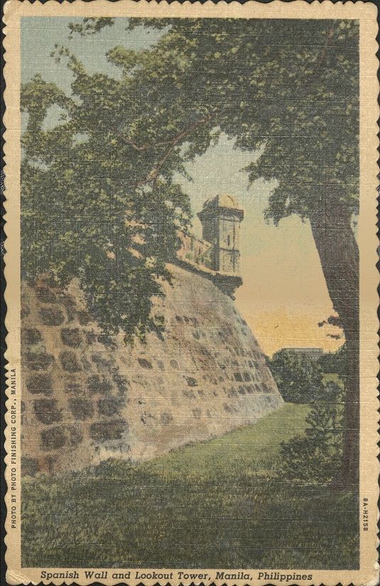 Subject: Corner of Intramuros wall with lookout tower, Manila.