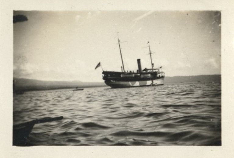 Subject: The USC&GS Fathomer anchored in Albay Gulf, perhaps with the shoulder of Mayon Volcano distant. Fathomer was a survey ship in the U.S. Coast & Geodetic Survey from 1905 to 1942. She spent her