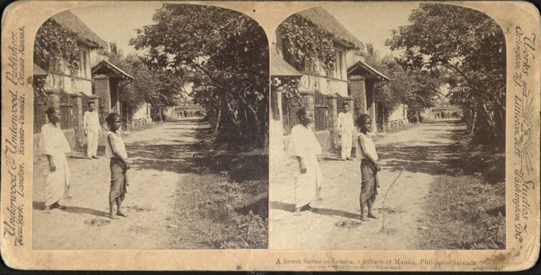 Underwood #U320a. Two women facing left on street in Ermita district of Manila, Philippines.