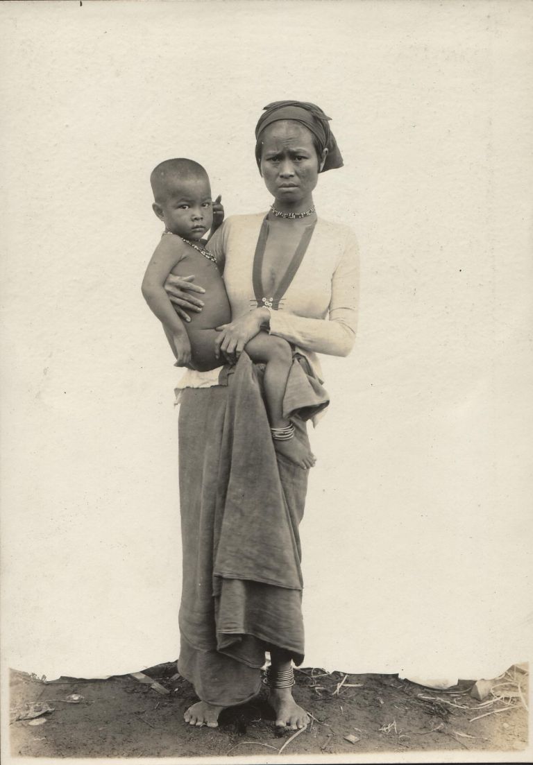 Subject: A Sibunan woman holds her son in this ethnographic photograph. Subanon (also spelled Subanen or Subanun) is a tribe indigenous to the Zamboanga peninsula area, particularly living in the moun